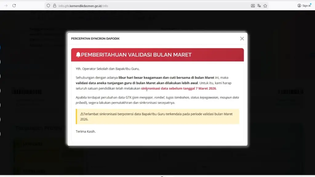 Jadwal Sinkronisasi Data Info GTK Tahun 2026