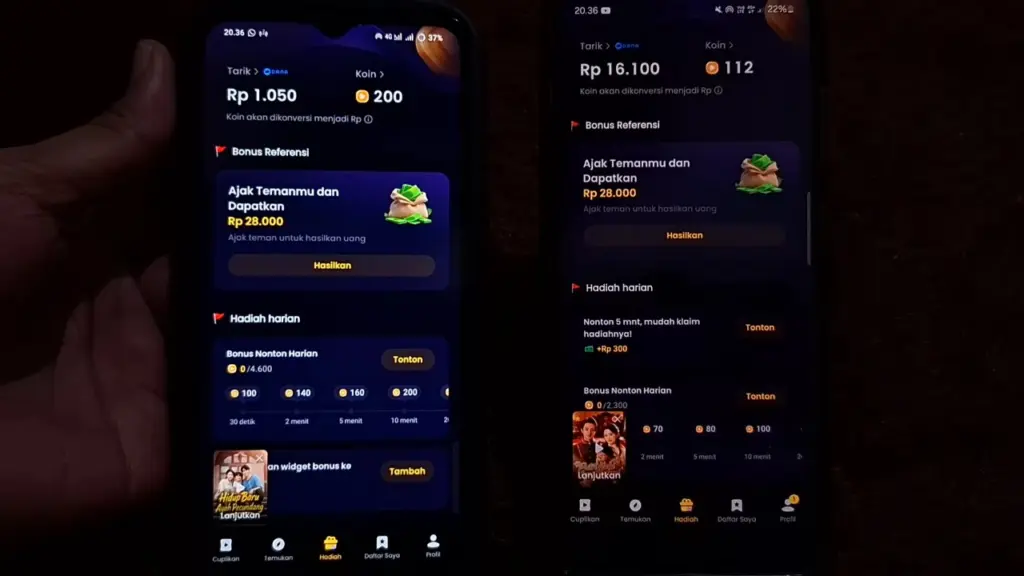 Ini adalah inti dari aplikasi Melolo. Setiap episode drama berdurasi 1-3 menit akan memberikan reward antara 10-50 koin. Karena dramanya memiliki konflik yang intens (biasanya genre romansa atau balas dendam), aktivitas ini tidak akan terasa membosankan.